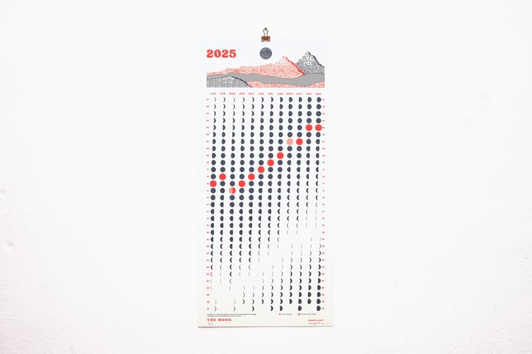 The Moon Calendar 2025 is designed by Jenne Grabowski / StudioTrouble™ and screen printed in Berlin by Oli Nerlich.