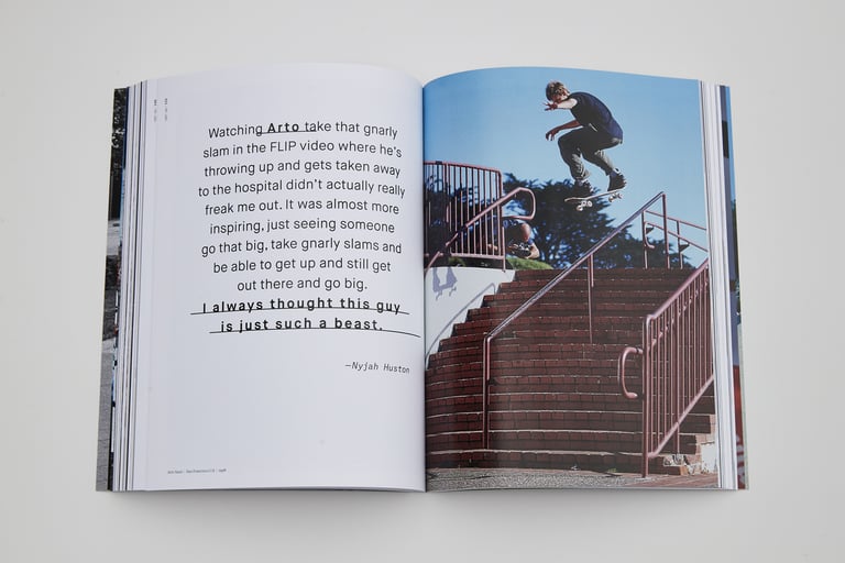 Also included in the book alongside Pete’s imagery are quotes and anecdotes from legends like Tony Hawk, Arto Saari, Jamie Thomas, Guy Mariano, Nyjah Huston, Geoff Rowley, Stevie Williams and others.